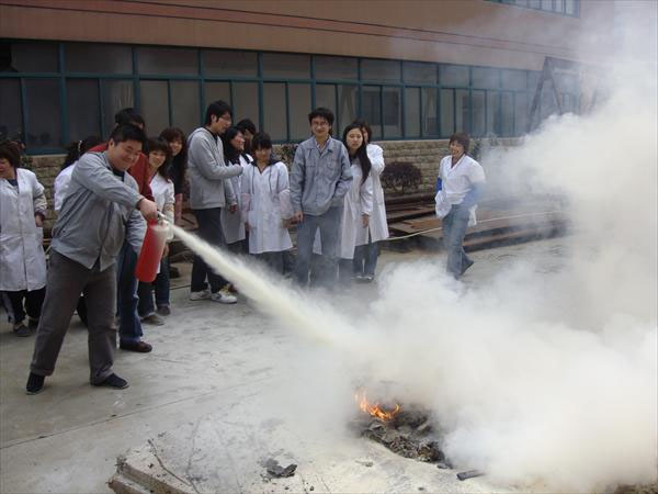 2009年3月31日公司义务消防员在专职安全员的带领下,展开一场人人讲安全,人人会用消防器材为主题的安全消防培训。下午13:00整,大火在金工车间门口准时燃烧,“消防员”利用自己掌握的知识,参加灭火。下午14:30分实践培训结束。通过这次培训,使得公司员工认识到安全的重要性,养成人人讲安全、人人会用安全器材的良好风气。